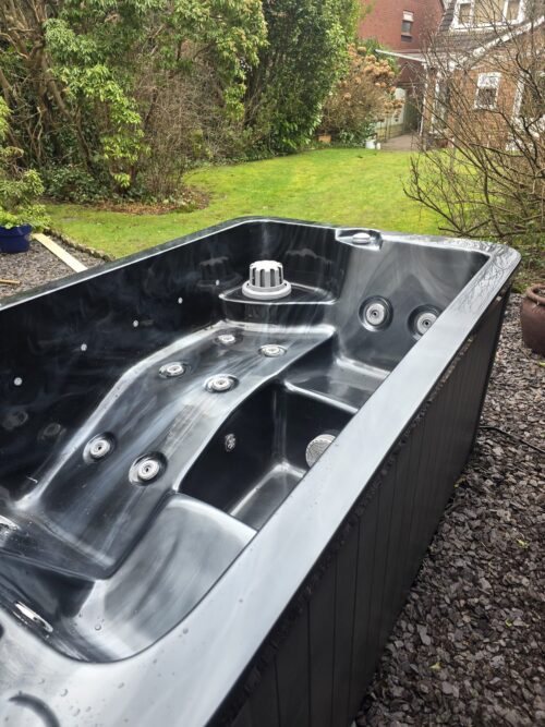 Please note there is a cosmetic imperfection to the acrylic surface in one area, presenting as a cloudy or marbled appearance. This does not impact the operation, safety, or water retention of the hot tub and is purely a visual finish issue. -