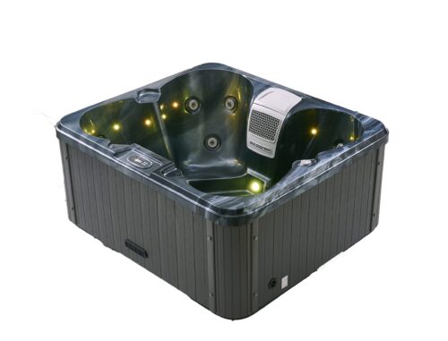 EX DEMO DRY SHOWROOM DISPLAY CONDITION 10/10 FREE INSULATED COVER, FREE ABS BASE SPECIFICATION – WHITE ACRYLIC SHELL WITH GREY CABINET Dimensions 1900mm x 1900mm x 760mm Total 25 JETS 5 SEATS (2 LOUNGERS) Weight 225kg LED Lighting Multi coloured LED lighting footwell and waterline Jet pumps 1 x 2hp (Two Speed) Electrical Requirements 13AMP Plug and Play or 32AMP Heater 2kw Balboa Insulation – Premium Shield – High Density insulation AMERICAN BALBOA CONTROL SYSTEM (CONTROLS AND MAIN BOARD) INSULATED COVER INCLUDED (RRP £499) 12 MONTH WARRANTY AMERICAN ARISTECH ACRYLIC SHELL PVC LONG LAST SKIRT PRE CIRCULATION CLEANING OZONE TECHNOLOGY WATER FILTRATION SYSTEM ANTI FREEZING HEAT COLOURS 1. WHITE SHELL WITH GREY SKIRT -